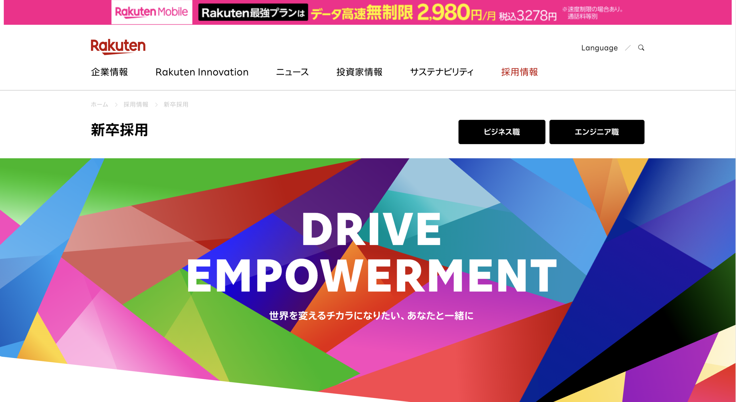 | モバイル | 楽天モバイル | 第4のキャリアとして通信事業を展開 |